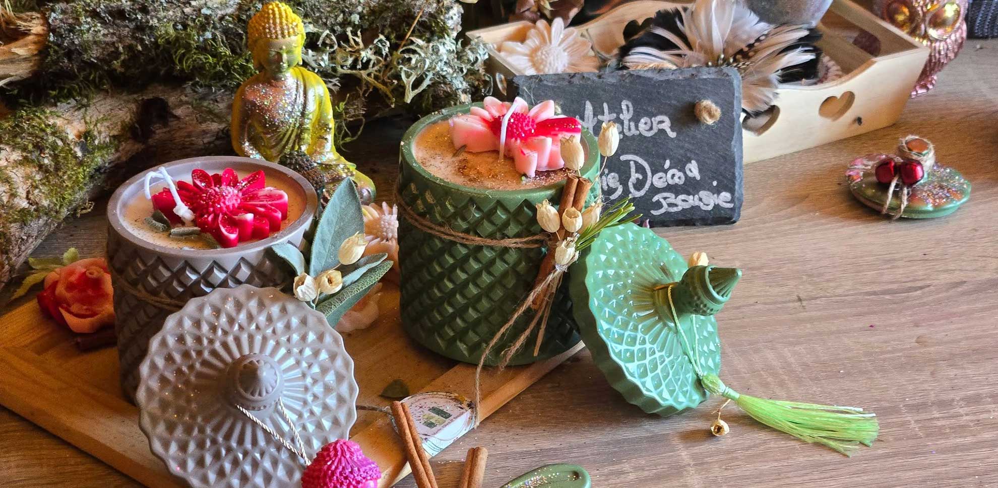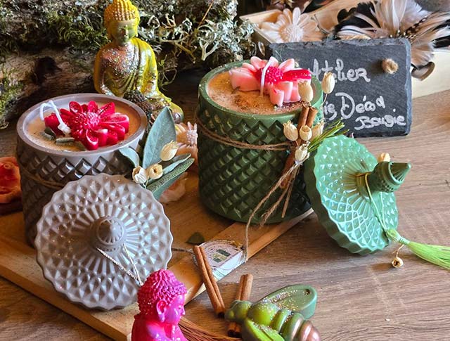 Je vous propose une variété d'activités : création de bougies artisanales et naturelles, conseils en décoration intérieure. Participez à des rencontres magiques et laissez-vous inspirer par des créations uniques. Rejoignez-moi pour vivre des moments inoubliables.